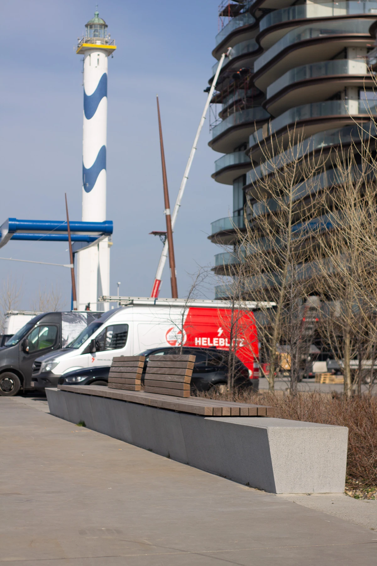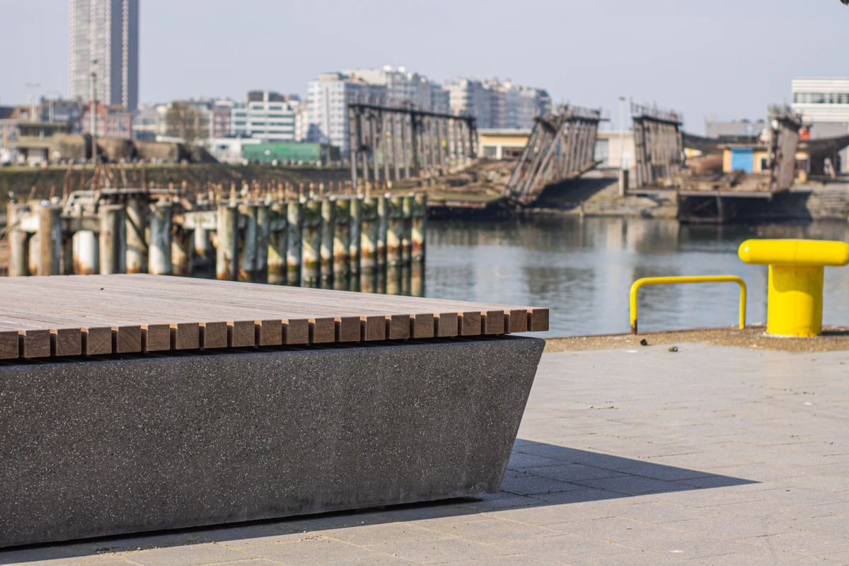 "Onze zitbanken dragen bij tot de grootstedelijke uitstraling van de Baelskaai. Het contrast met de vroegere vissershaven kan niet groter zijn"